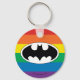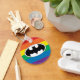 DC Pride | Batman's iconic logo with layers of rainbow colors inside it.