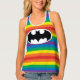 DC Pride | Batman's iconic logo with layers of rainbow colors inside it.