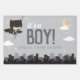 Set the stage for a superhero-themed gender reveal with this customizable Batman Super Hero Baby Shower Sign! Featuring a cartoon Batman swinging over Gotham City on a starry night, this fun and dynamic design is perfect for welcoming guests and adding excitement to your reveal. Personalize it to make your celebration truly unforgettable.
