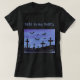 A tiny watercolor landscape of bats in flight over a cemetery at night adorns this fun Halloween shirt. Customize by changing the text to suit yourself!