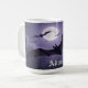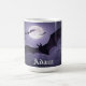 Bats fly across a full moon on this spooky and creepy Halloween mug.