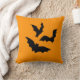 Simple three bats on either side of this unique orange pillow for Halloween.