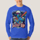 The "Batter Up" t-shirt design features a dynamic baseball scene with a bold, action-packed illustration of a player swinging a bat. The player is captured mid-swing, with energy lines emphasizing the motion. In the background, a baseball diamond subtly fades into view, with the words "Batter Up" emblazoned in bold, sporty font. The design is vibrant, with a mix of team colors—like deep blue and bright white—creating a powerful contrast. The shirt conveys the excitement of the game, perfect for any baseball fan.