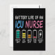 Humorous shift chart showing the battery life of an ICU nurse with colorful levels from start to double shift. Ideal for intensive care nurses who enjoy relatable workplace humor.