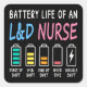 Humorous shift chart showing the battery life of an L&D nurse, also known as a labor and delivery nurse, with colorful levels from start to double shift. Ideal for maternity and birthing staff who enjoy relatable workplace humor.