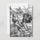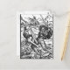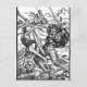 Vintage Woodcut of Battle Scene Postcards. Old black and white woodcut illustration showing a battle scene where a man is fighting with a skeleton over slain bodies.