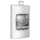 The product is a good size and came exactly as it was pictured. The lid is not attached to the flask, which could be dangerous on drunken nights... The print came out surprisingly well and looks very sharp. Would definitely recommend.
