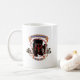 Battle Tech Tournament, coffee mug, with a scrolled mech life banner with a city backdrop.
