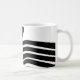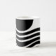 This mug has Bauhaus design of wavy lines and circles in black on a field of white.