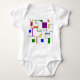 This baby bodysuit has a Bauhaus design of lines going vertically and horizontally to make a grid with squares, rectangles, triangles, and circles placed around the grid. If you like the design but prefer different colors, message me.