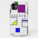 This phone case has a Bauhaus design of lines going vertically and horizontally to make a grid with squares, rectangles, triangles, and circles placed around the grid. If you like the design but prefer different colors, message me.