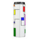 This thermal bottle has a Bauhaus design of lines going vertically and horizontally to make a grid with squares, rectangles, triangles, and circles placed around the grid. If you like the design but prefer different colors, message me.
