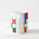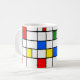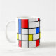 This mug has a Bauhaus design in primary colors that looks like stained-glass. Colorful, bold, fun!