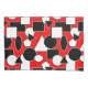 This pillowcase has a Bauhaus design of triangles, circles, rectangles, and pentagons in black and white on a field of red.