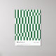 A bold and graphic Bauhaus 1919–1923 art print featuring a dynamic diagonal stripe and checkerboard grid pattern in rich dark forest green and white. The optical illusion of shifting perspective through converging stripes gives this piece a hypnotic, architectural energy rooted in Bauhaus design principles. Dark green is one of the most-searched interior design colours in Australia and the US for 2025, making this geometric stripe poster a highly on-trend choice for contemporary living rooms, home offices, and maximalist gallery walls.