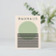 A minimalist modern art design in the Bauhaus style of a green sun with black horizontal lines on a beige background.