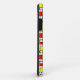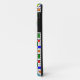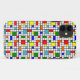This iPhone case has a Bauhaus design of a grid with squares and rectangles in red, green, blue, orange, light blue, yellow, and red.