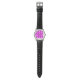 This men's watch has a Bauhaus design of overlapping triangles in purple, magenta, and pink.