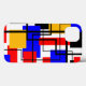 This phone case has a Bauhaus design of rectangles and squares with black lines traversing the design on a field of white.