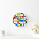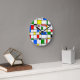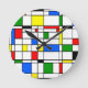This clock has a Bauhaus design in primary colors that looks like stained-glass. Colorful, bold, fun!