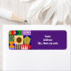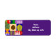 These return address labels have a Bauhaus design of shapes and lines making a collage in primary and secondary colors.
