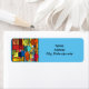 These return address labels have a Bauhaus inspired design of shapes and lines in different shades of mid-century modern colors.