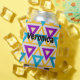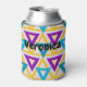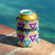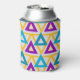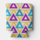 This can cooler has a Bauhaus design of repeating triangles in gold, turquoise, teal, purple, and light gold. If you like the design but prefer different colors, message me.