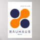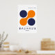 A sophisticated and energetic Bauhaus Ausstellung art print from the 1923 Weimar series, featuring two bold navy circles interlocked with a vibrant orange double-circle form on a clean cream background. This geometric composition showcases the Bauhaus mastery of colour contrast and visual balance. One of the most popular retro-modern styles trending across Pinterest in Australia and the US, this orange and navy print is a stunning choice for contemporary living rooms, home offices, and gallery walls.