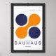 A sophisticated and energetic Bauhaus Ausstellung art print from the 1923 Weimar series, featuring two bold navy circles interlocked with a vibrant orange double-circle form on a clean cream background. This geometric composition showcases the Bauhaus mastery of colour contrast and visual balance. One of the most popular retro-modern styles trending across Pinterest in Australia and the US, this orange and navy print is a stunning choice for contemporary living rooms, home offices, and gallery walls.