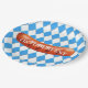 Bavarian, sausage, geometric pattern paper plates, for Oktoberfest. Germany.