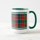 Coffee mug with the Clan Baxter tartan. Red and forest green Scottish plaid pattern from 1856, with light blue, yellow and white accents.