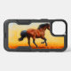 Bay wild mustang horse running across a dry grassy field. Realistic artwork created from an original oil painting by equine and wildlife artist Crista S. Forest.