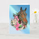 Bay Horse Head and Roses Card