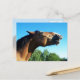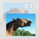 A bay horse whinnies into the air with a line of summer trees in the distance and under a beautiful blue sky and green trees. Perhaps he's saying hi to someone. Maybe you can too. Say hey to someone who would enjoy it. People love getting something in the mail.
