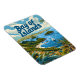 A captivating vintage depiction of the Bay of Islands, New Zealand, showcasing its stunning natural beauty and maritime charm. The design features the bay's crystal-clear waters dotted with lush green islands, framed by rugged coastlines and serene beaches. Rendered in a nostalgic style, the artwork captures the timeless allure and adventurous spirit of this iconic New Zealand destination.