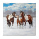Bay Pinto Paint Horses In Winter Snow Ceramic Tile