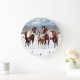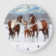 Bay Pinto Paint Horses In Winter Snow Large Clock