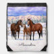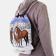 Bay Quarter Horses In Snow Drawstring Bag