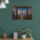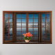 The artwork creates the illusion of having a window on your wall. The illusion gives the feeling of looking out at a calm lake To make this poster even more interesting I added a pot of flowers on the sill. A Very unique and original poster!