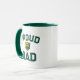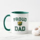This spirited design celebrates Baylor University and proud fathers. It features the word "PROUD" boldly displayed above the fierce Baylor Bears head logo, rendered in the university's iconic gold and green colors. Below the powerful bear emblem, the word "DAD" is prominently showcased in matching green lettering. This design is a perfect way for fathers to enjoy their favorite beverage while expressing their unwavering pride and strong connection to Baylor University and its beloved Bears.