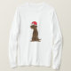 Adorable chocolate labrador retriever dog wearing a Santa hat cartoon shirt or sweatshirt design. Great gift idea. Can also add custom text when ordering.