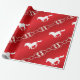 Blonde & Broke Equestrian - Wrapping Paper - Red with White Swirl Snowflakes and Running Horse