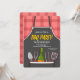 A barbecue invitation featuring a black apron with a pocket full of barbecue elements over a red-plaid shirt background. (<a href='https://www.freepik.com/free-vector/hand-drawn-bbq-party-poster_1701237.htm'>Designed by Freepik</a>). <br/><br/>The card is easy to customize with your wording, font, font color, paper shape options and choice of six paper types.<br/><br/>Not exactly what you're looking for? All our products can be custom designed to meet your needs at no extra charge.<br/><br/>Simply contact us at heartfelthelper@gmail.com.<br/><br/>Coordinating products available: Just ask us!