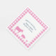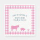 Vintage Baby Shower napkins in pink, navy blue and white. The template has fully editable wording and the design elements are perfect for a Bbq baby shower, backyard baby shower, outdoor picnic, farmyard theme etc.. This charming rustic design has vintage typography and traditional gingham plaid in pink and white with silhouette farm animals. Please browse my store for matching invitations and party decor.