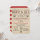 This invitation is perfect for any backyard party or casual BBQ. The design features a vintage look of antique etchings and typography in dark brown and red against a timeworn paper background. The design reads "We have the brew & 'que, now all we need is you". The rest of the party details text is customizable using the easy provided templates. The front side also has two 'pointing hand' engraved illustrations as well as a fork-knife-spoon illustration. The reverse side has wide red stripes against the antique tan background. Further party details can be added to the reverse side if needed.