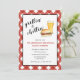Fun family Barbecue party invitation with burger and beer watercolor illustration with red and white gingham plaid border. Perfect for Outdoor events like Family Picnic, Reunions, birthday, retirement party, baby shower.
