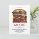 BBQ invite, giant burger. Advertise your birthday BBQ in style with this beautiful watercolour burger, stacked with burgers / ketchup and lots of cheese! Perfect for any bbq / outdoor event. Simply customise the text with your own details.