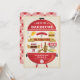 A red kettle bbq grill with all the goodies for your barbecue party. Customize with your own text. The "Join us for a Barbecue" can be removed if needed. Barbeque items include: hot dog, hamburger, chicken, corn, paper plate, banners, ketchup, beer bottle, fork & knife. Background has a distressed wood grain background. The back of the card features a cute picnic gingham tablecloth. Original Illustration by pj_design.
