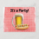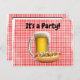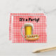 Beer mug and hotdog with red and white gingham for BBQ party invite.