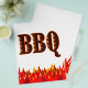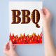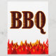 A custom flyer template with the word BBQ in western flaming letters with graphic art of red and orange flames at the bottom of the design.